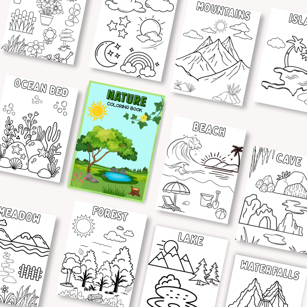 Nature Coloring Pages for Kids | Printable PDF 20 Pages Fun and Educational Nature Themes